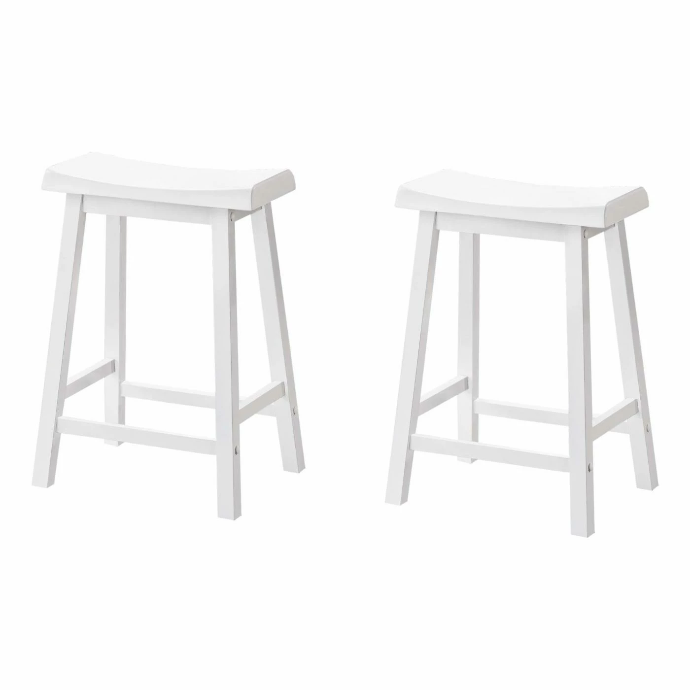 Kitchen counter, game room, any room – youβre going to find so many uses for the Monarch Pennyhill Saddle Seat 2 Piece Counter Height Barstools you just might have to order more than one set. Youβll get two counter-height stools with this set, and theyβre clean white finish, so itβs easy to coordinate with practically any decor.