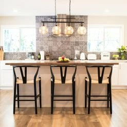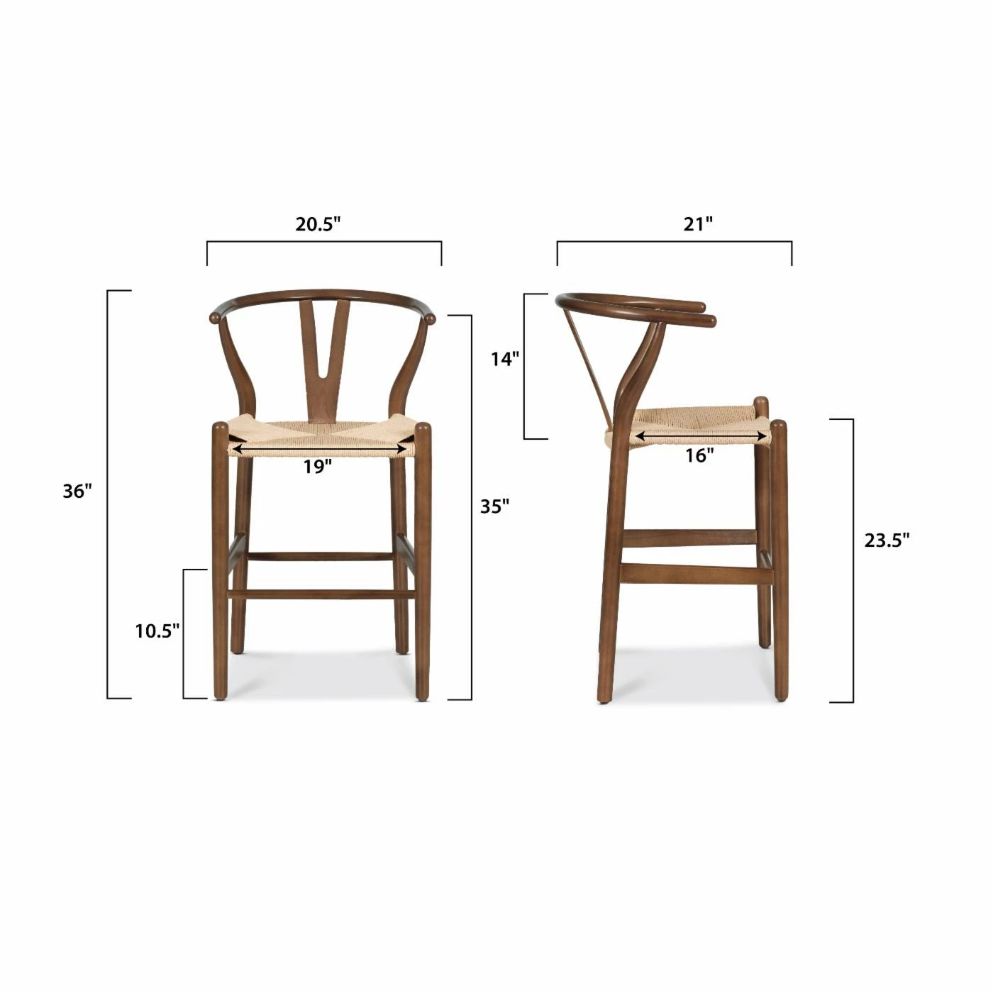 True mid-century inspiration goes a long way with the Poly & Bark Weave 23.5 in. Counter Stool. Boasting a familiar silhouette with a curved back and clean lines, the weave delivering that punch of drama that your living area or library has been seeking. The stool features a solid wood frame with a medium finish and a woven rope seat that offers textural contrast. This counter stool is perfect for a kitchen countertop, and creates a classic, natural aesthetic for the home.
