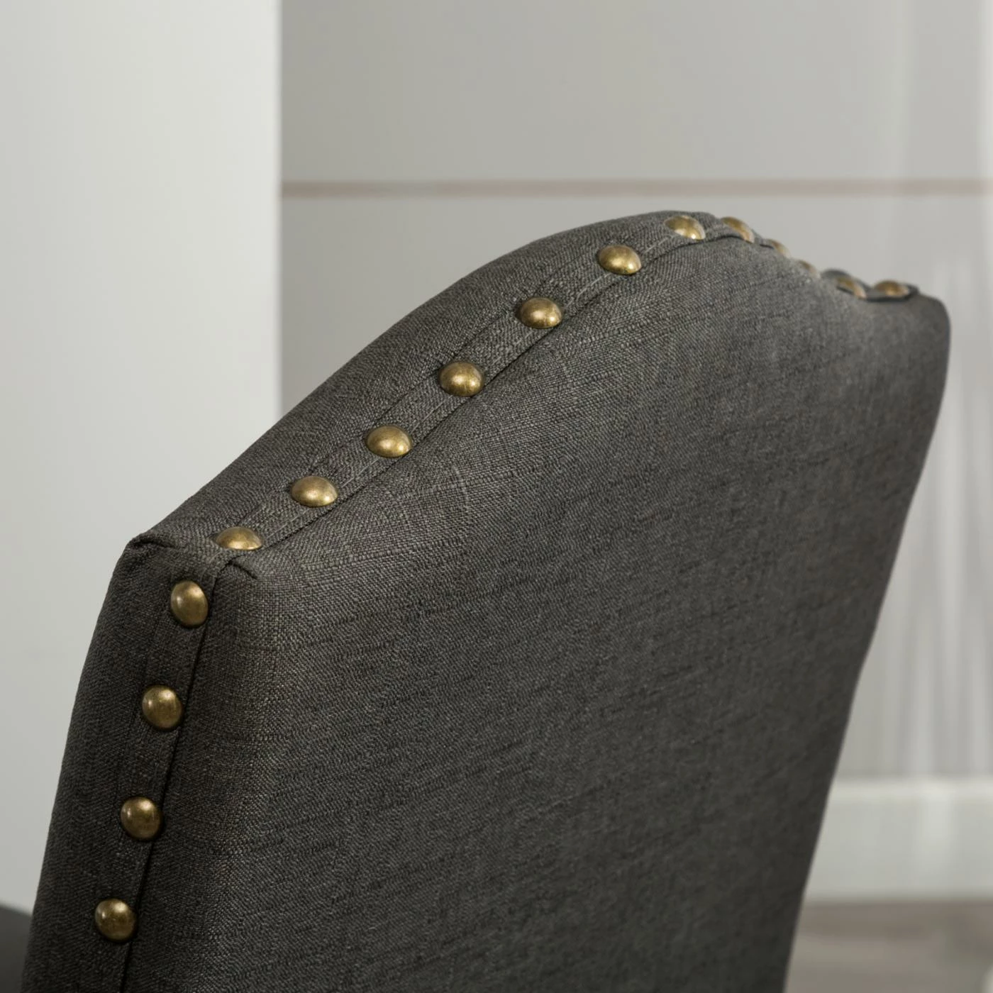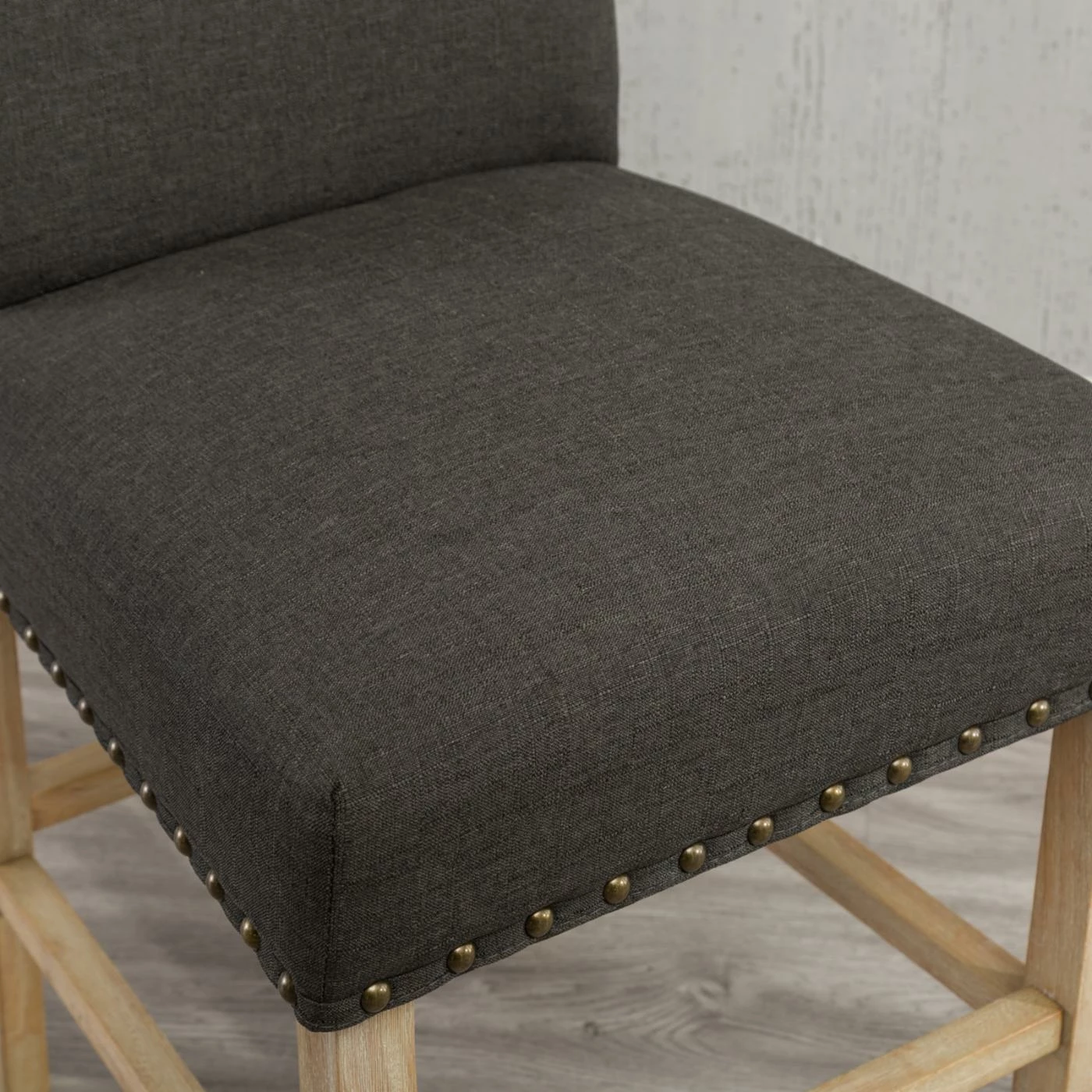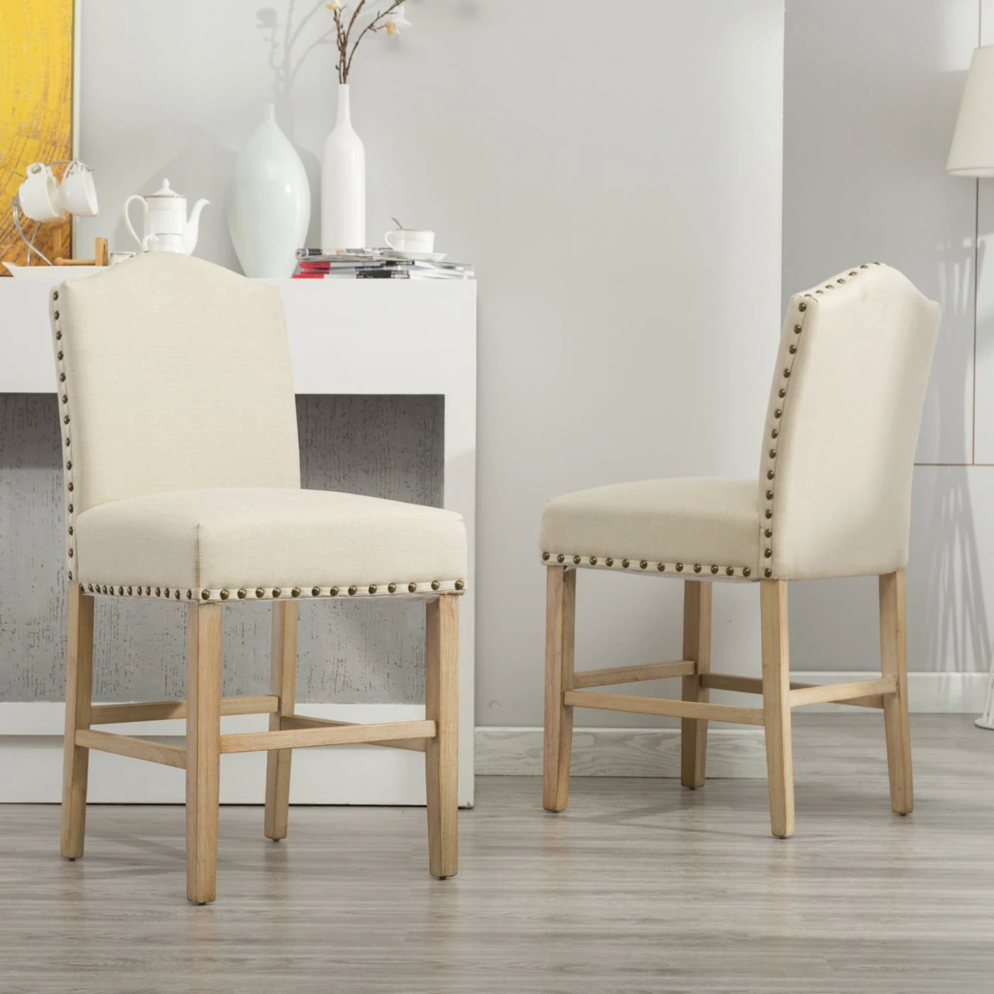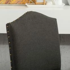 The Roundhill Furniture Mod Urban Counter Height Stools – Set of 2 features an arching upper edge that lends a regal touch to your living space. This set of stools flows with a clean, armless design and high, solid back for support. The framing is crafted of durable, sturdy wood with a natural brown finish. The soft fabric upholstery is decorated with nail head trim.
