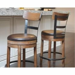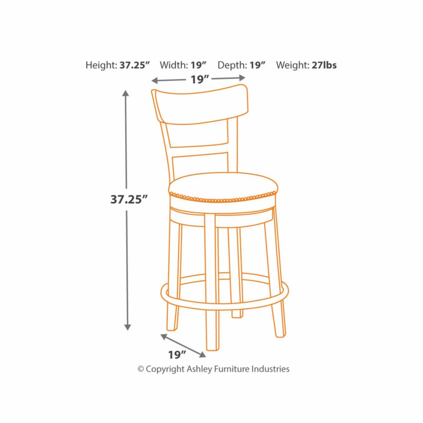 Full of vintage beauty and rustic charm, the Signature Design by Ashley Pinnadel Wood Counter Height Stools is just at home in the city as it is in a country cottage. With a metal frame with wood cap rails, a wood base, and metal footrest, the real beauty of these stools is seen in the vintage brown faux leather upholstery perfectly accented by the nailhead trim. A gorgeous light brown finish accents the metal components as well as the richness of the seat. A beautiful addition to any home, these luxurious stools allow you to dine in comfort and style.