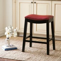 Budget π Counter Height Stools Abbyson Living Mia Bonded Leather Saddle 26 In. Counter Stool π€©