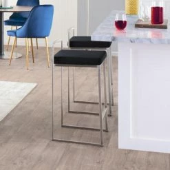 Budget π Counter Height Stools DecMode 24 In. Iron And Leather Hide Square Black Stool π